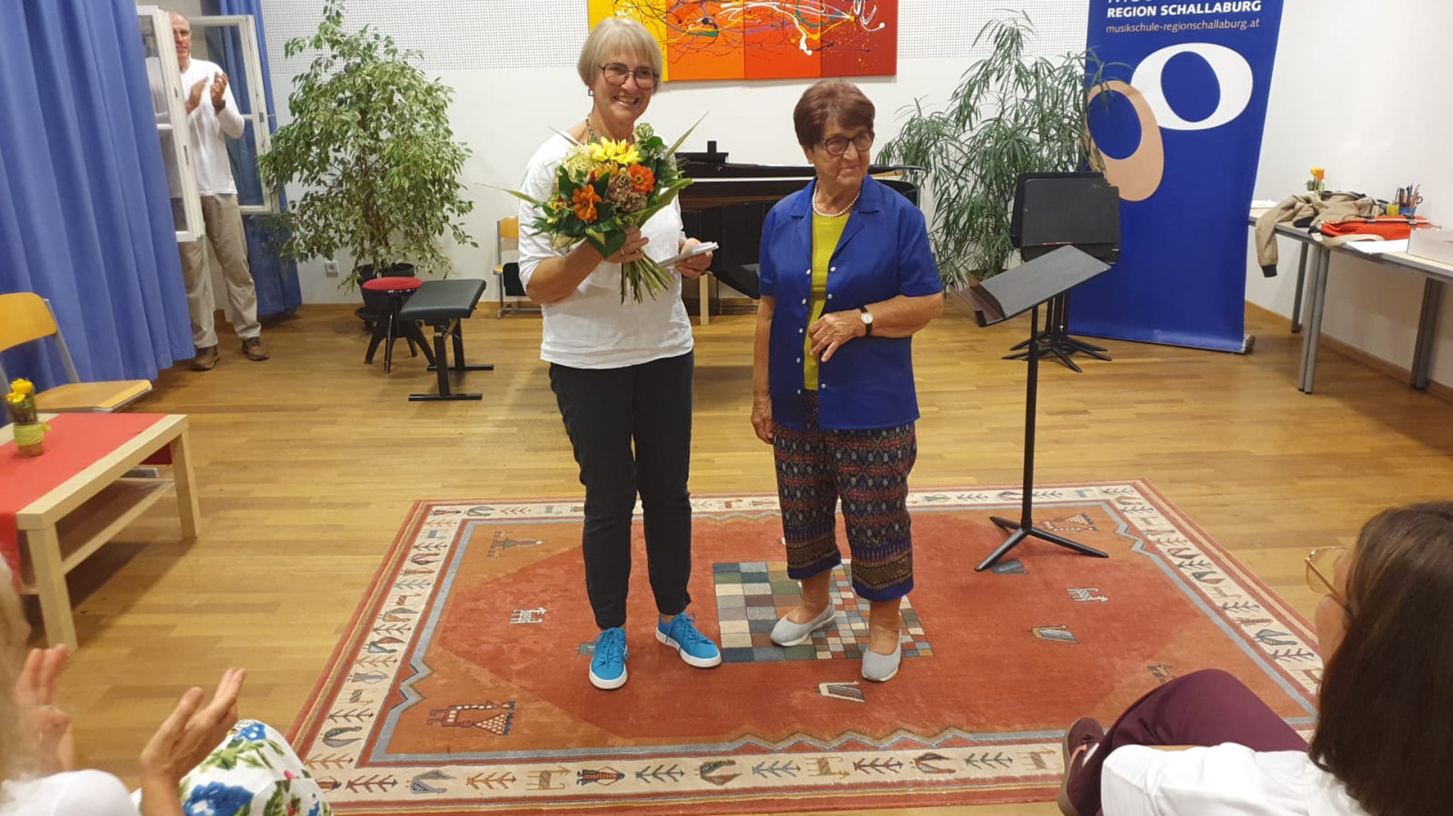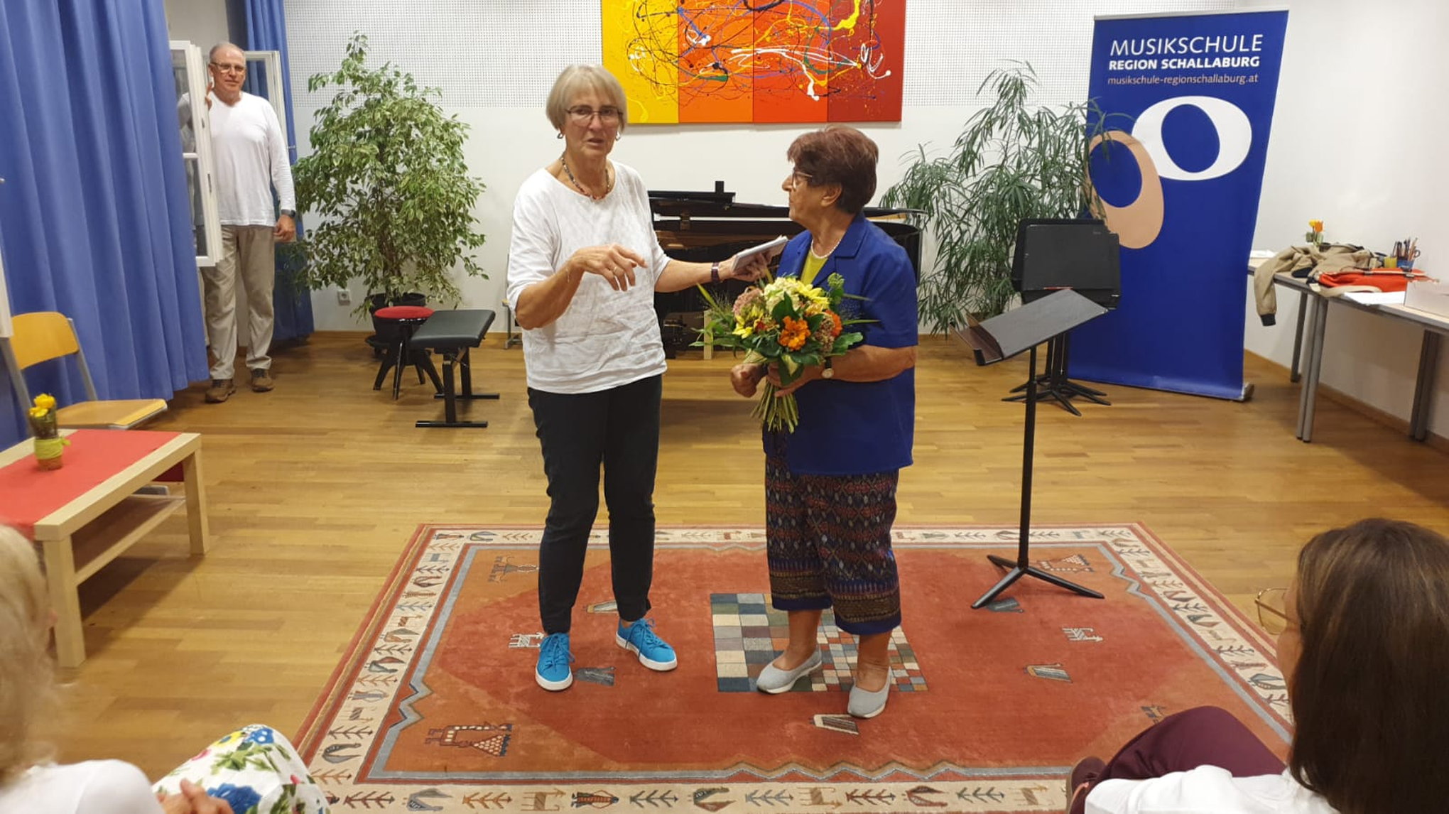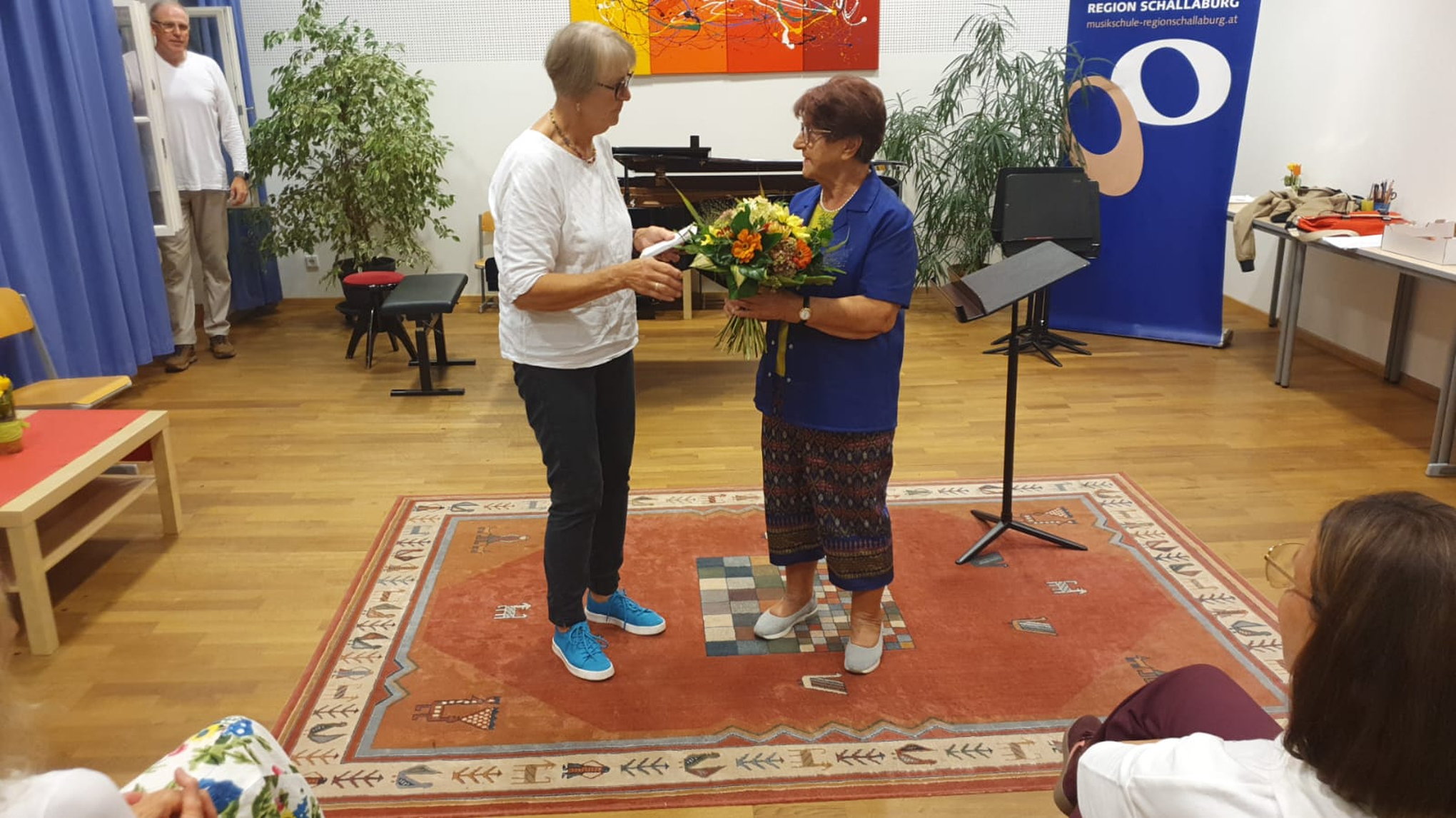 Unsere Sangesschwester Hedi Gary feierte mit dem Chor ihren 85. Geburstag, Obfrau Angelika Widrig gratulierte ihr im Namen des Singvereines.